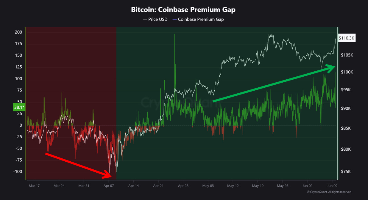 根據 CryptoQuant 數據,「Coinbase 溢價」自 4 月 21 日起呈現上升趨勢,顯示來自美國的投資者、大部分代表散戶的買入壓力正在增加,支撐著這股上升趨勢,而且這種正向趨勢暫時沒有過熱跡象,是修正後上升週期中的典型模式。